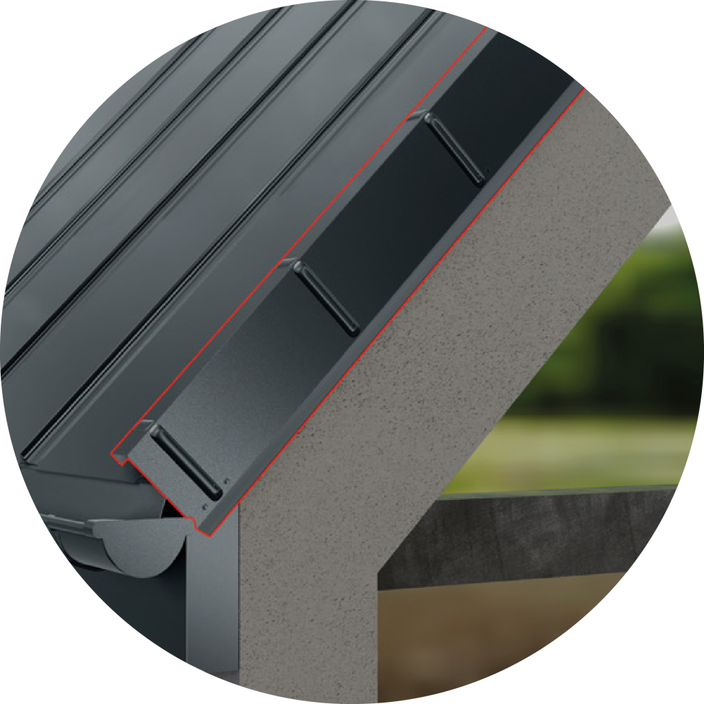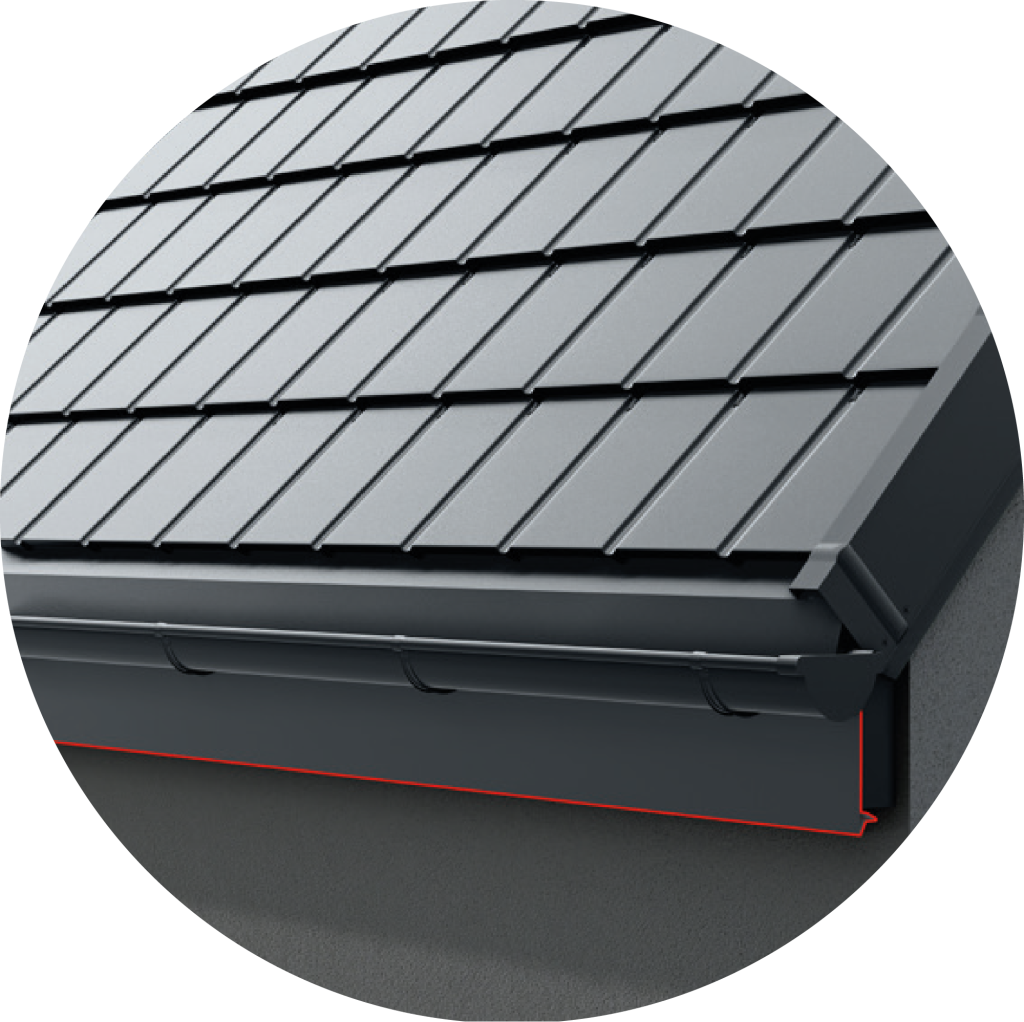 The following flashing discharges condensate from the roof to the gutter (in case of face hooks) or outside the universal gutter fascia (in case of rafter hooks).