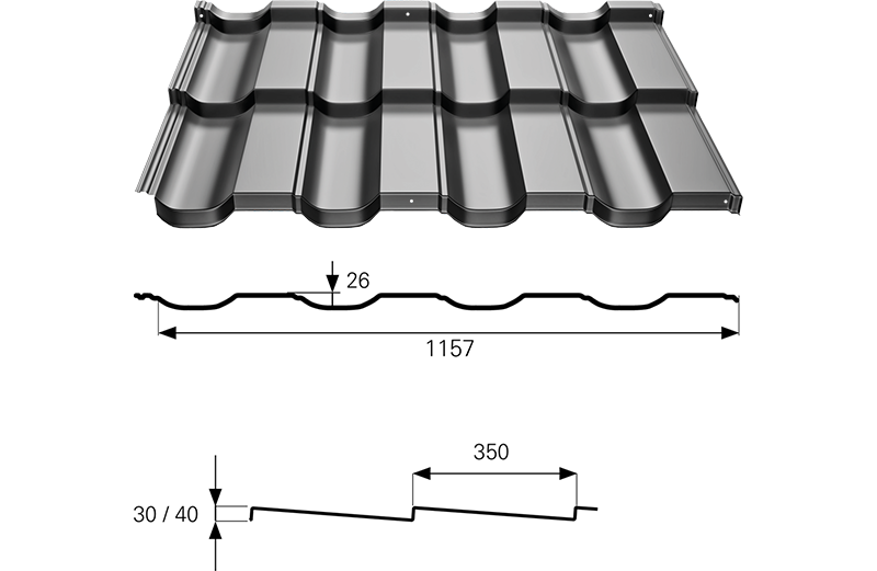 The form of the two-module sheets facilitates loading, transport and unloading and, above all, makes installation easier and faster. Lightweight and small sheets mean more convenient delivery to the roof and safe storage.