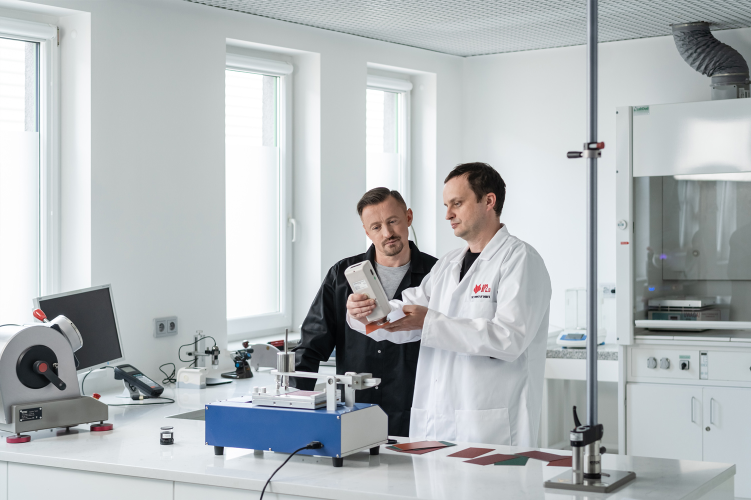 Olyan termékeket hoztunk forgalomba, amelyeket laboratóriumi vizsgálatoknak vetünk alá a szín és a festékszerkezet betartásának tekintetében; ide tartozik többek közt: az IZI, a ZET és a COMPACT SERIES cserepeslemezek a természet színeiből merített színek széles választéka. A vizsgálatokat fényességmérővel és színmérővel végezzük, így akár 55 év garanciát tudunk vállalni a színtartósságra és a bevonat sértetlen szerkezetére.