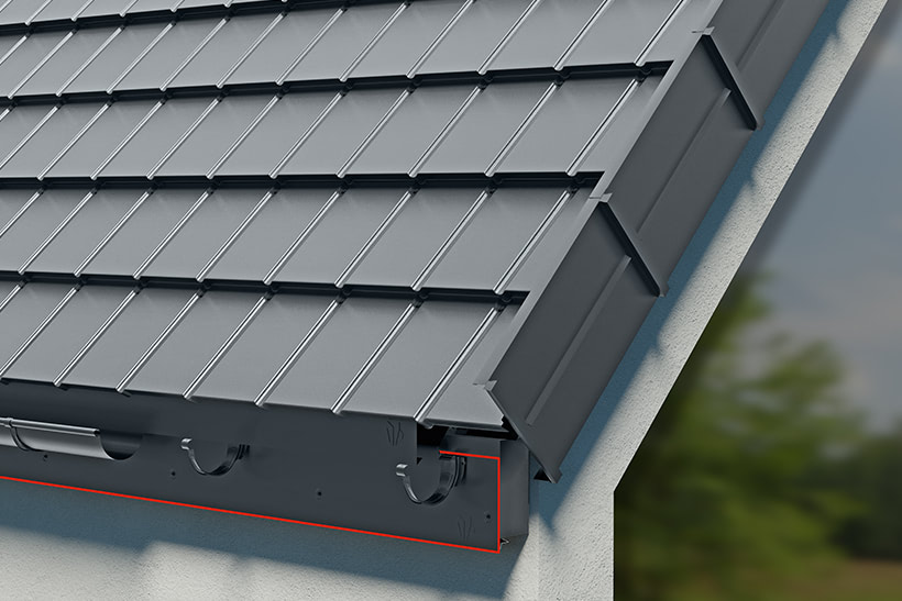 Uniwersalny pas podrynnowy charakteryzuje się specjalnym dolnym zagięciem, które służy jednocześnie do zamknięcia podbitki dachowej. Obróbka ta służy również jako przedłużenie wiatrownicy.